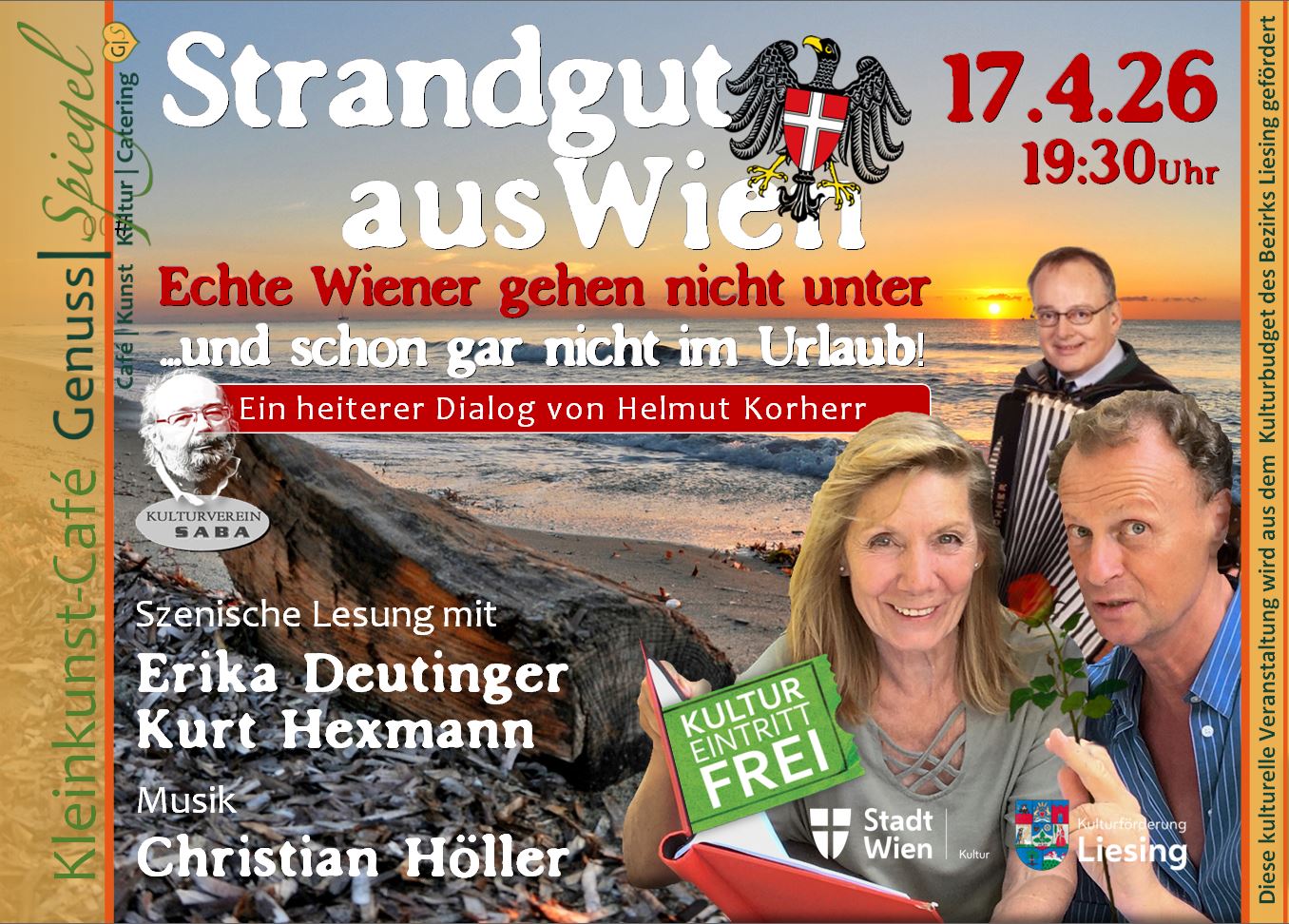 GenussSpiegel präsentiert: „Strandgut aus Wien“ – ein heiterer Dialog von Helmut Korherr – Szenische Lesung mit Erika DEUTINGER & Kurt HEXMANN – EINTRITT FREI