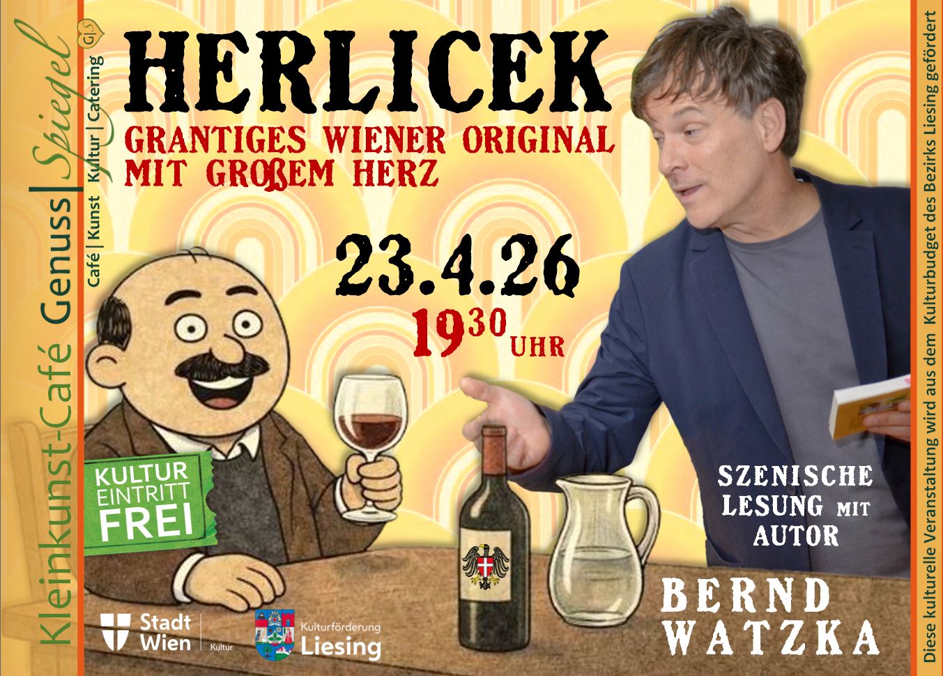 GenussSpiegel präsentiert: „HERLICEK – Ein grantiges Wiener Original“ – Szenische Lesung mit Autor Bernd WATZKA – EINTRITT FREI